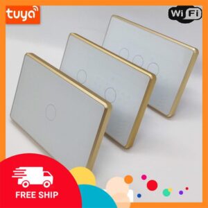 CÔNG TẮC WIFI TUYA VIỀN VÀNG 3 NÚT CẢM ỨNG CHỮ NHẬT ĐIỀU KHIỂN TỪ XA HẸN GIỜ BẬT TẮT TRÊN ĐIỆN THOẠI